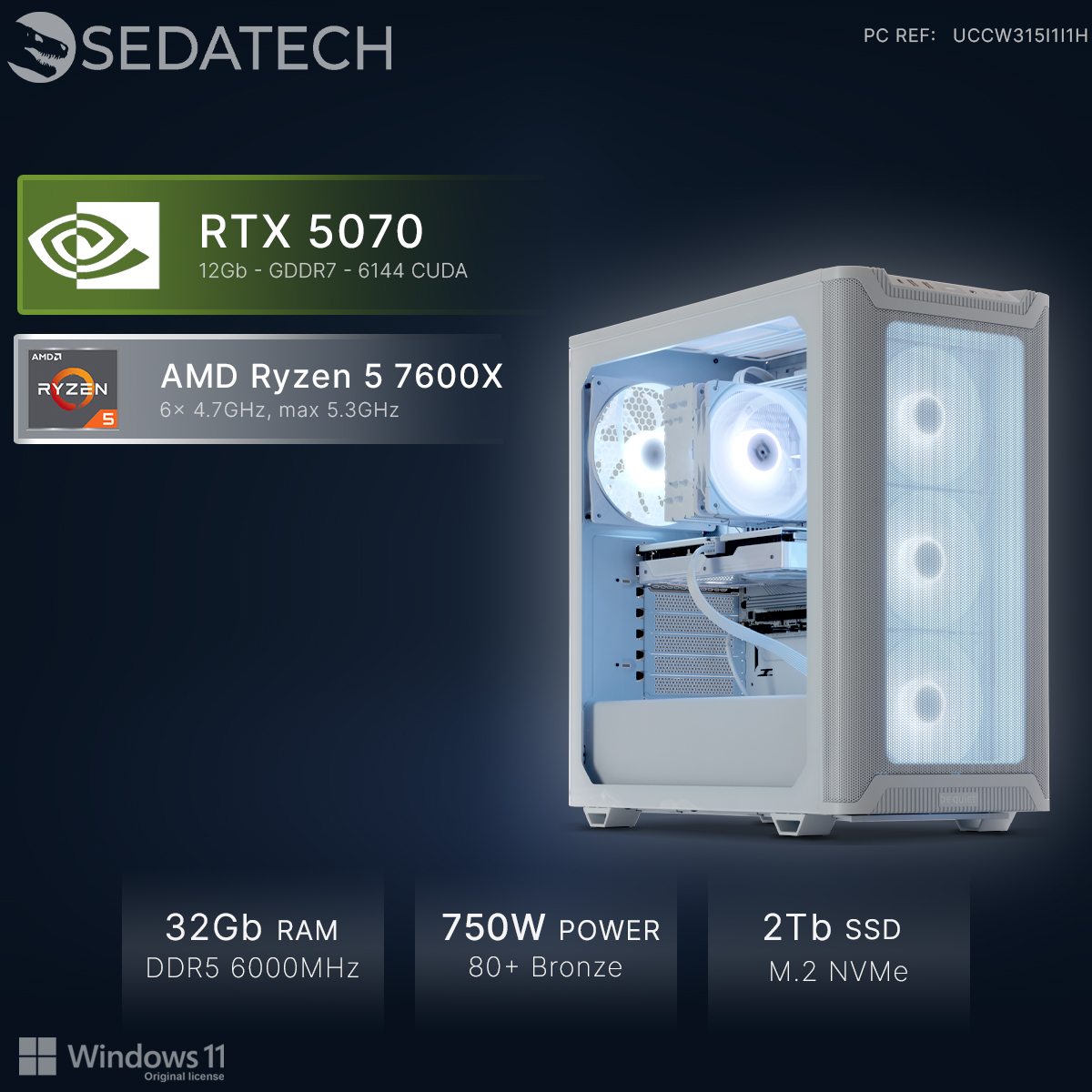 Nicht nur durch seine edle und außergewöhnliche Optik versetzt dieser Power-Rechner seine Nützer ins Staunen. Auch die inneren Werte stimmen! Die einzelnen Komponenten sind miteinander perfekt abgestimmt : dank der extrem leistungsstarken Geforce RTX5070 White 12GB, einer der schnellsten Grafikkarte überhaupt, und der CPU AMD Ryzen 5 7600X 6x 4.7GHz (max 5.3GHz) genießt der kompromisslose Anwender die anspruchsvollsten 3D Spiele und Multimediaanwendungen in bester 4K Qualität und mit maximaler FPS-Zahl