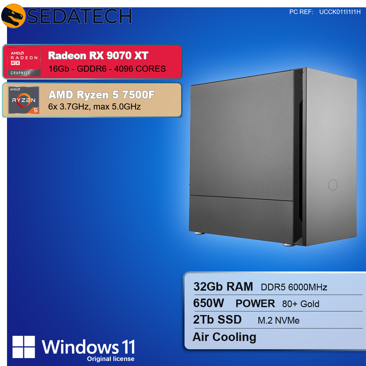 Gaming PC, AMD Ryzen 5 7500F, Radeon RX 9070XT
