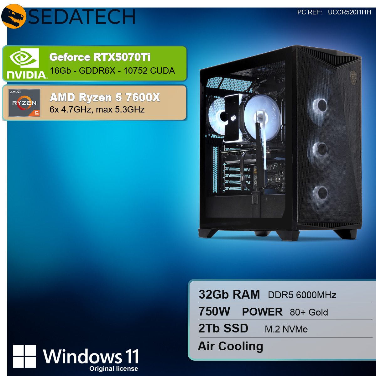Thanks to the combination of DirectX 12 and the Geforce RTX5070Ti 16Gb graphics card, one of the fastest on the market, and the astonishing 3D power of the AMD Ryzen 5 7600X 6x 4.7GHz (max 5.3GHz) CPU, you will be able to play any online multiplayer video game without graphic limitations, with breathtaking 3D effects and fluidity!