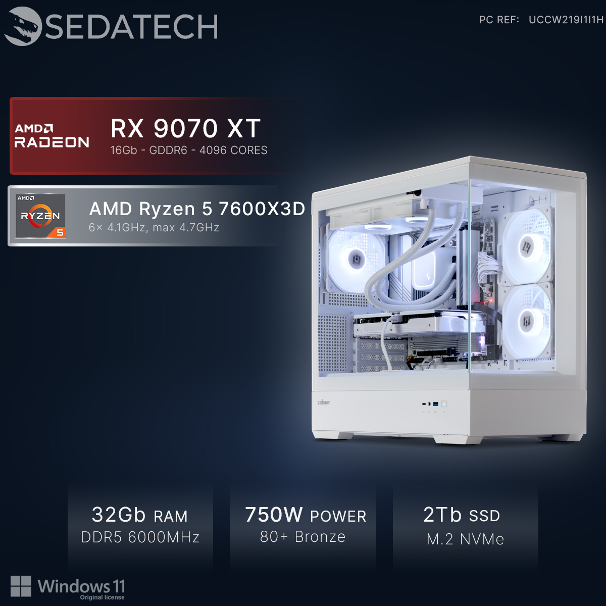 Thanks to the combination of DirectX 12 and the Radeon RX 9070 XT White 16Gb graphics card, one of the fastest on the market, and the astonishing 3D power of the AMD Ryzen 5 7600X3D 6x 4.1GHz (max 4.7GHz) CPU, you will be able to play any online multiplayer video game without graphic limitations, with breathtaking 3D effects and fluidity!