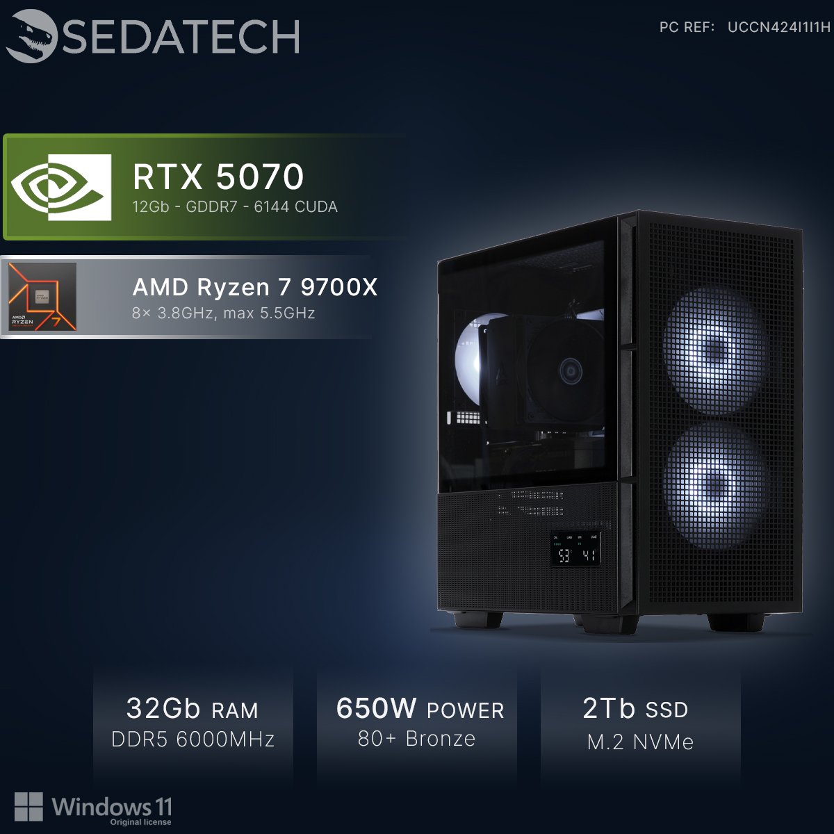 Thanks to the combination of DirectX 12 and the Geforce RTX5070 12Gb graphics card, one of the fastest on the market, and the astonishing 3D power of the AMD Ryzen 7 9700X 8x 3.8GHz (max 5.5GHz) CPU, you will be able to play any online multiplayer video game without graphic limitations, with breathtaking 3D effects and fluidity!