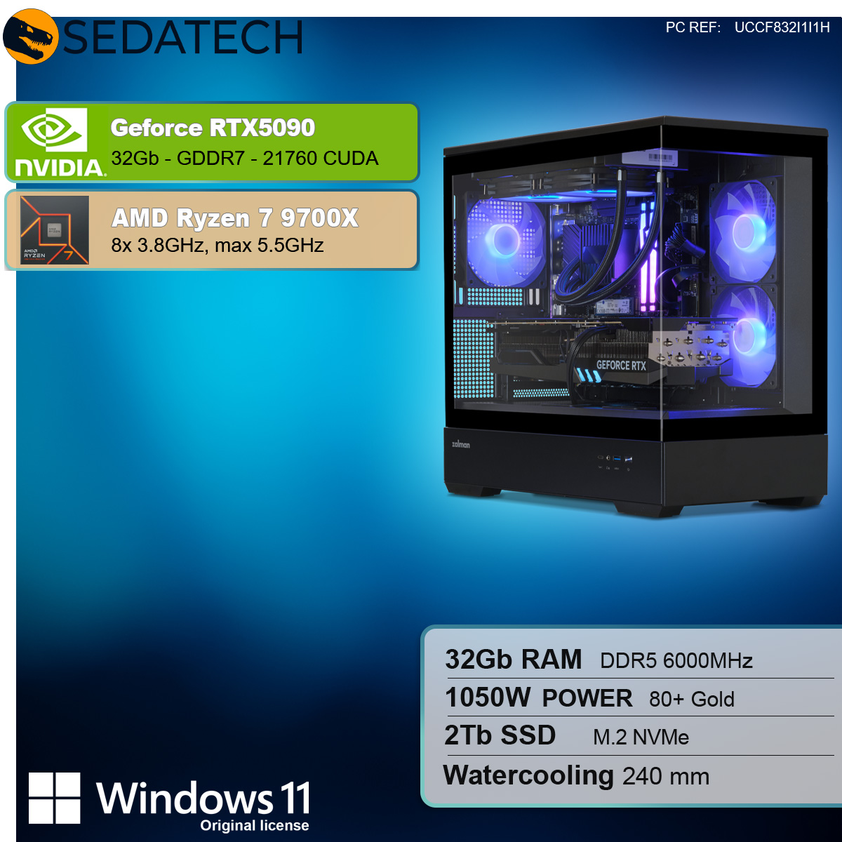 Thanks to the combination of DirectX 12 and the Geforce RTX5090 32Gb graphics card, one of the fastest on the market, and the astonishing 3D power of the AMD Ryzen 7 9700X 8x 3.8GHz (max 5.5GHz) CPU, you will be able to play any online multiplayer video game without graphic limitations, with breathtaking 3D effects and fluidity!