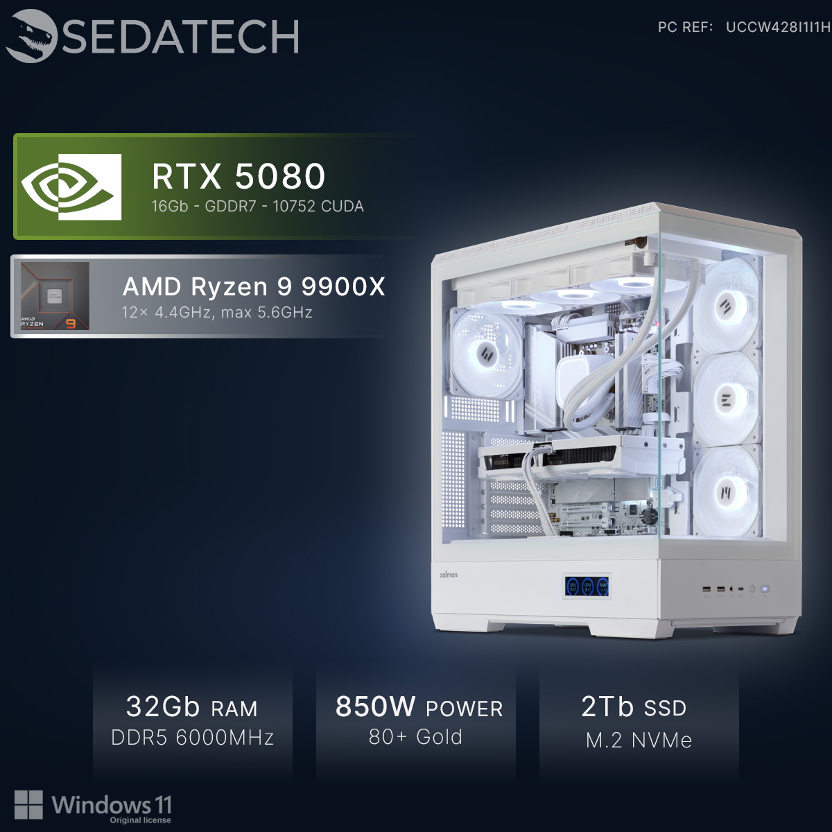 Thanks to the combination of DirectX 12 and the Geforce RTX5080 White 16Gb graphics card, one of the fastest on the market, and the astonishing 3D power of the AMD Ryzen 9 9900X 12x 4.4GHz (max 5.6GHz) CPU, you will be able to play any online multiplayer video game without graphic limitations, with breathtaking 3D effects and fluidity!