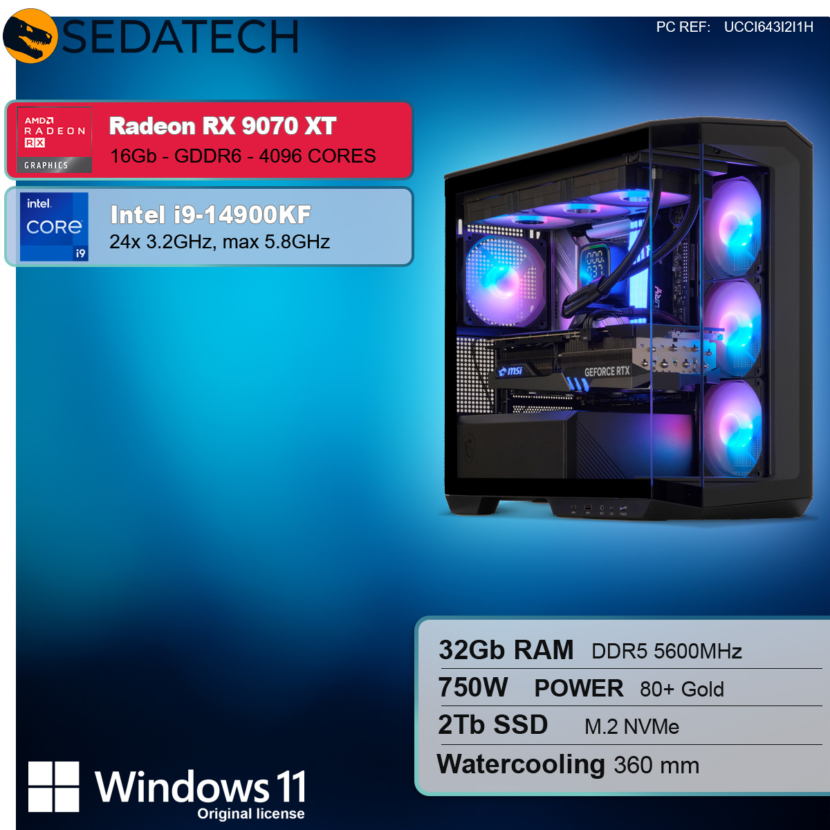 Thanks to the combination of DirectX 12 and the Radeon RX 9070 XT 16Gb graphics card, one of the fastest on the market, and the astonishing 3D power of the Intel i9-14900KF 24x 3.2GHz (max 5.8GHz) CPU, you will be able to play any online multiplayer video game without graphic limitations, with breathtaking 3D effects and fluidity!
