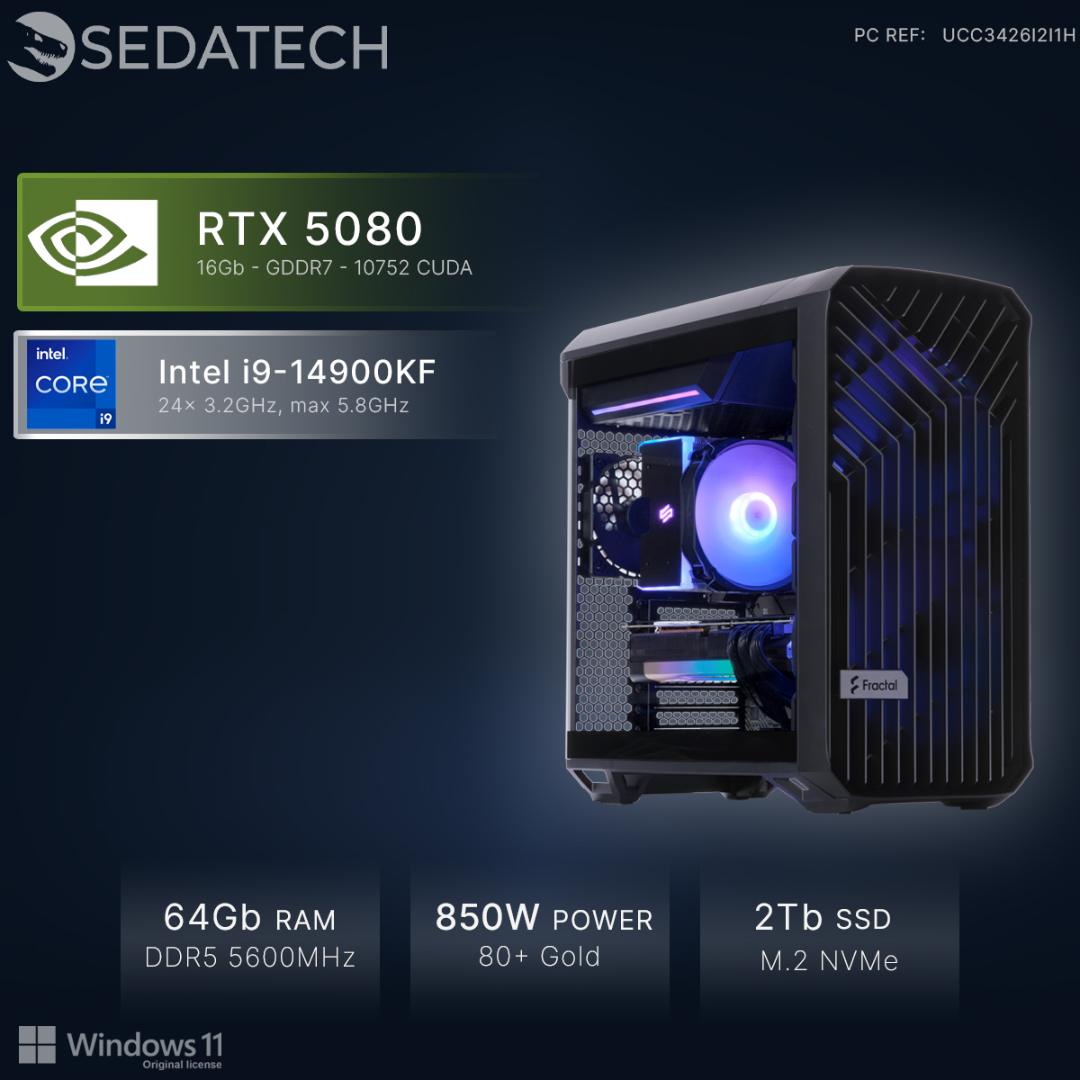 This powerful and silent workstation is dedicated to CAD, CGI and DCC intensive applications such as AutoCAD, Adobe Photoshop, Illustrator, 3ds Max, ... Its Geforce RTX5080 16Gb graphics card, intended for professional use, exploits the powerful Intel i9-14900KF 24x 3.2GHz (max 5.8GHz) CPU to increase productivity and ensure you fast and stable performance