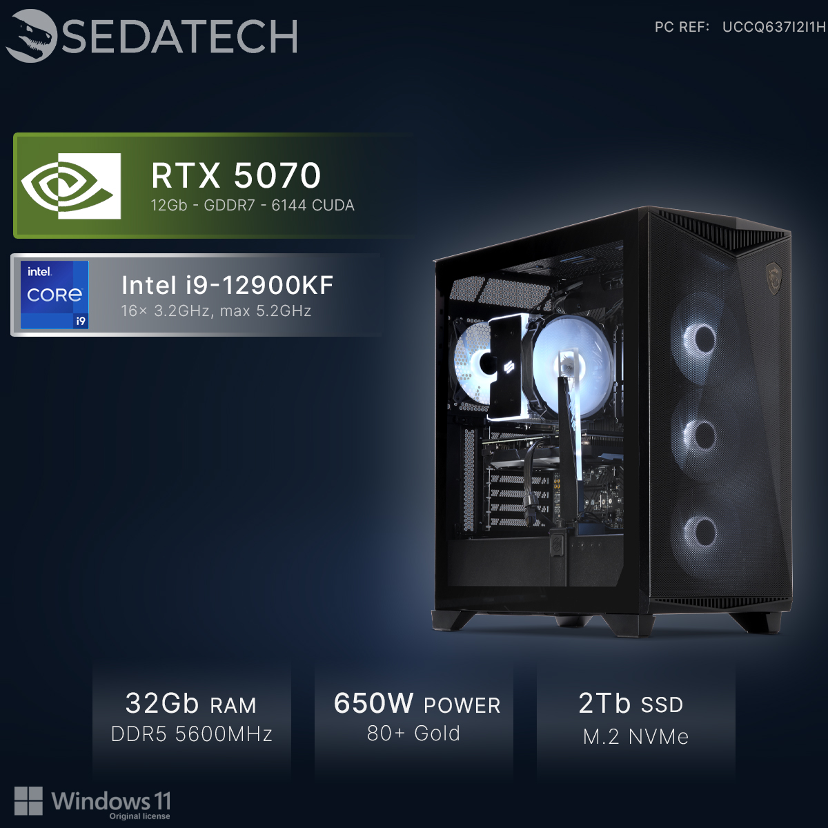 Gracias a la gran potencia 3D de la tarjeta gráfica Geforce RTX5070 12Gb, uno de los modelos más rápidos en el mercado, y del procesador Intel i9-12900KF 16x 3.2Ghz (max 5.2Ghz), podéis jugar a cualquier juego en línea sin restricciones gráficos, con fluidez y efectos 3D impresionantes!