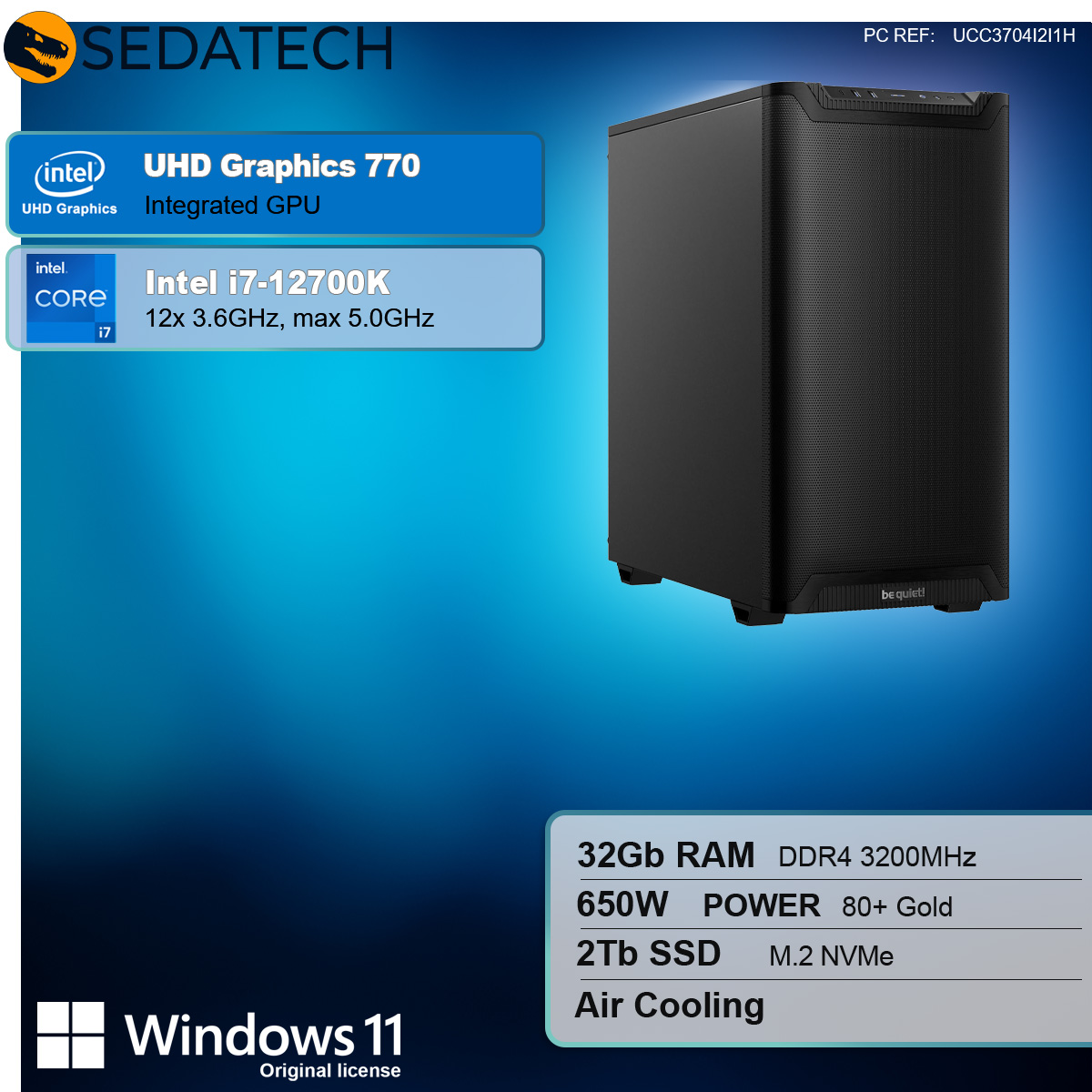 Eficiente, apto para tu oficina domestica, tu despacho profesional y tu empresa por medio de la rapidez del procesador Intel i7-12700K 12x 3.6Ghz (max 5.0Ghz), con el que se puede disfrutar de eficiencia sin igual en cualquier tipo de aplicación
