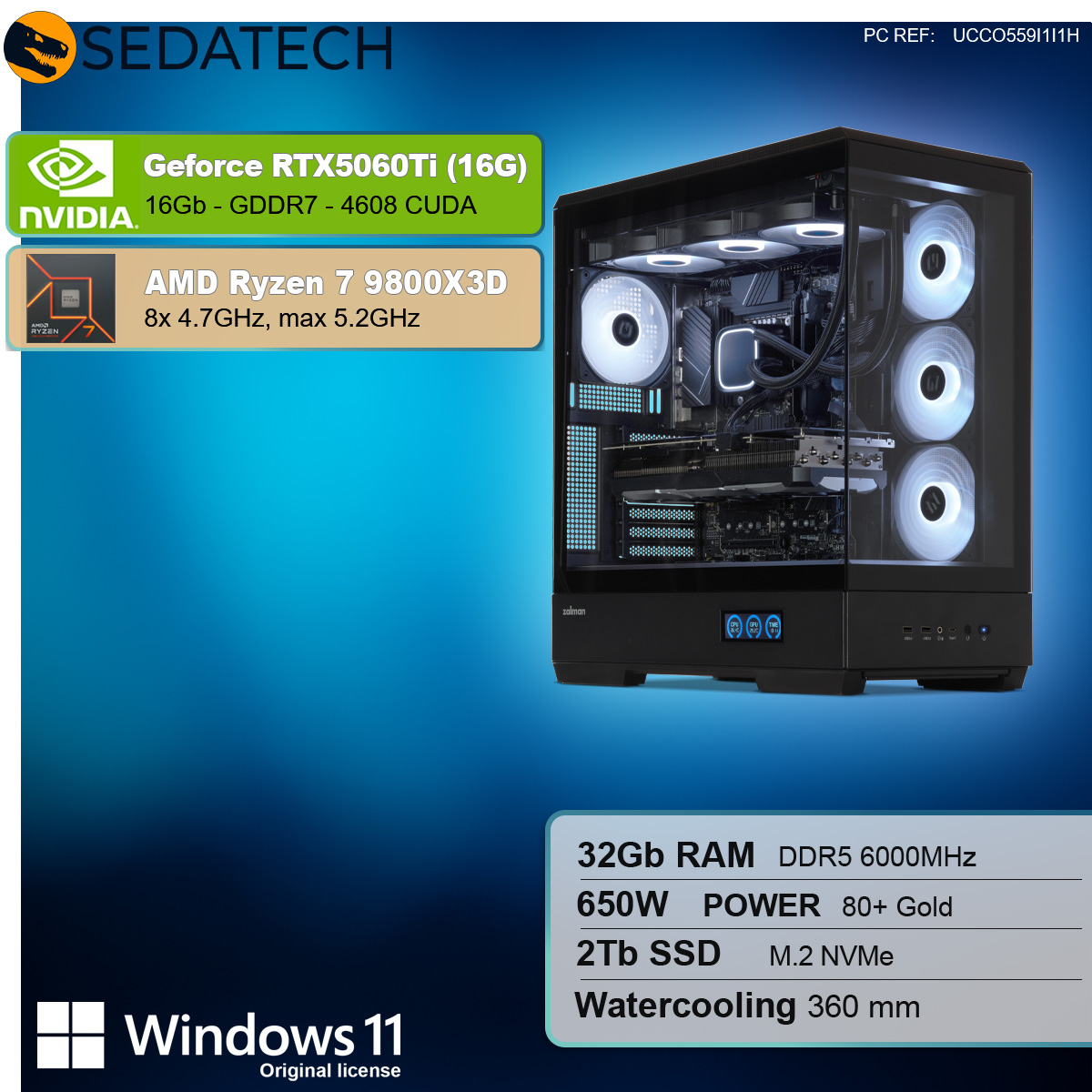 PC Gamer, AMD Ryzen 7 9800X3D, Geforce RTX5060Ti 16Gb