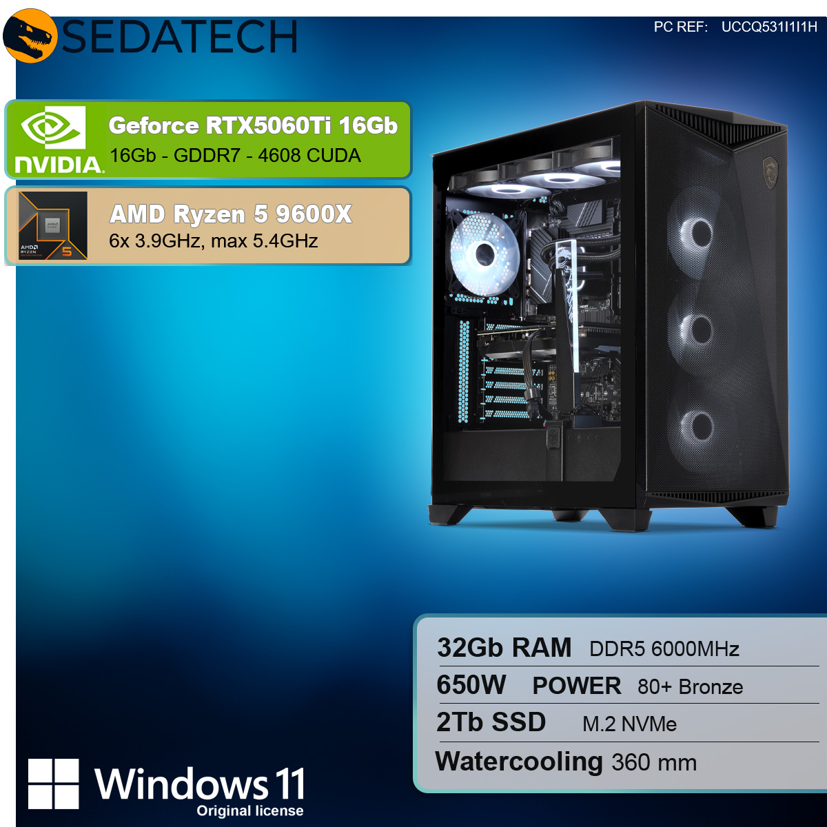Gaming PC, AMD Ryzen 5 9600X, Geforce RTX5060Ti 16Gb