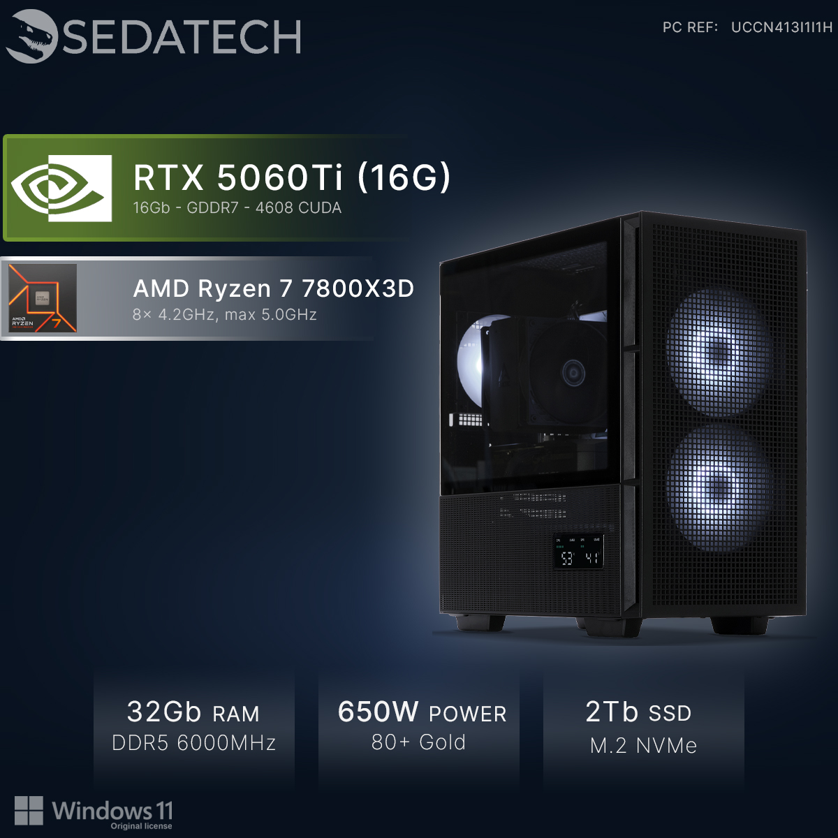 Gaming PC, AMD Ryzen 7 7800X3D, Geforce RTX5060Ti 16Gb