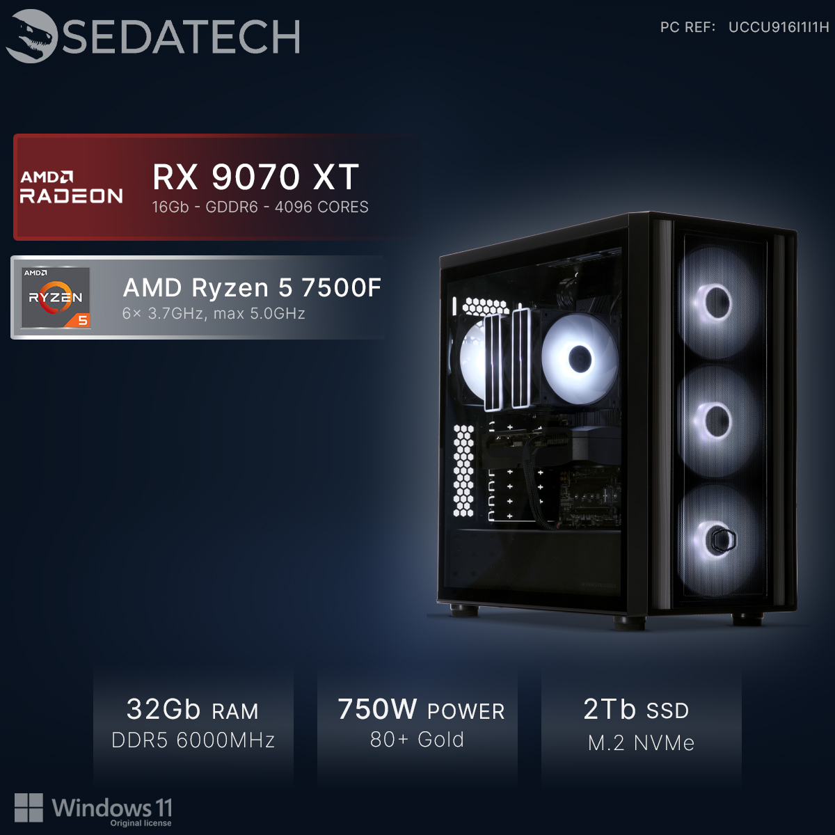 PC Gaming, AMD Ryzen 5 7500F, Radeon RX 9070XT