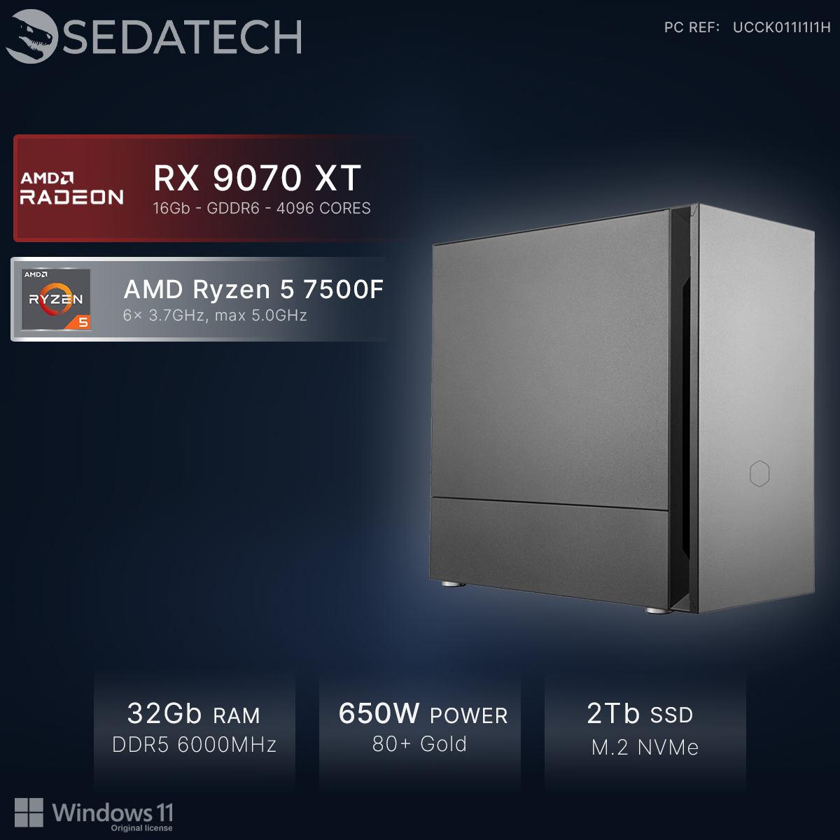 Gaming PC, AMD Ryzen 5 7500F, Radeon RX 9070XT