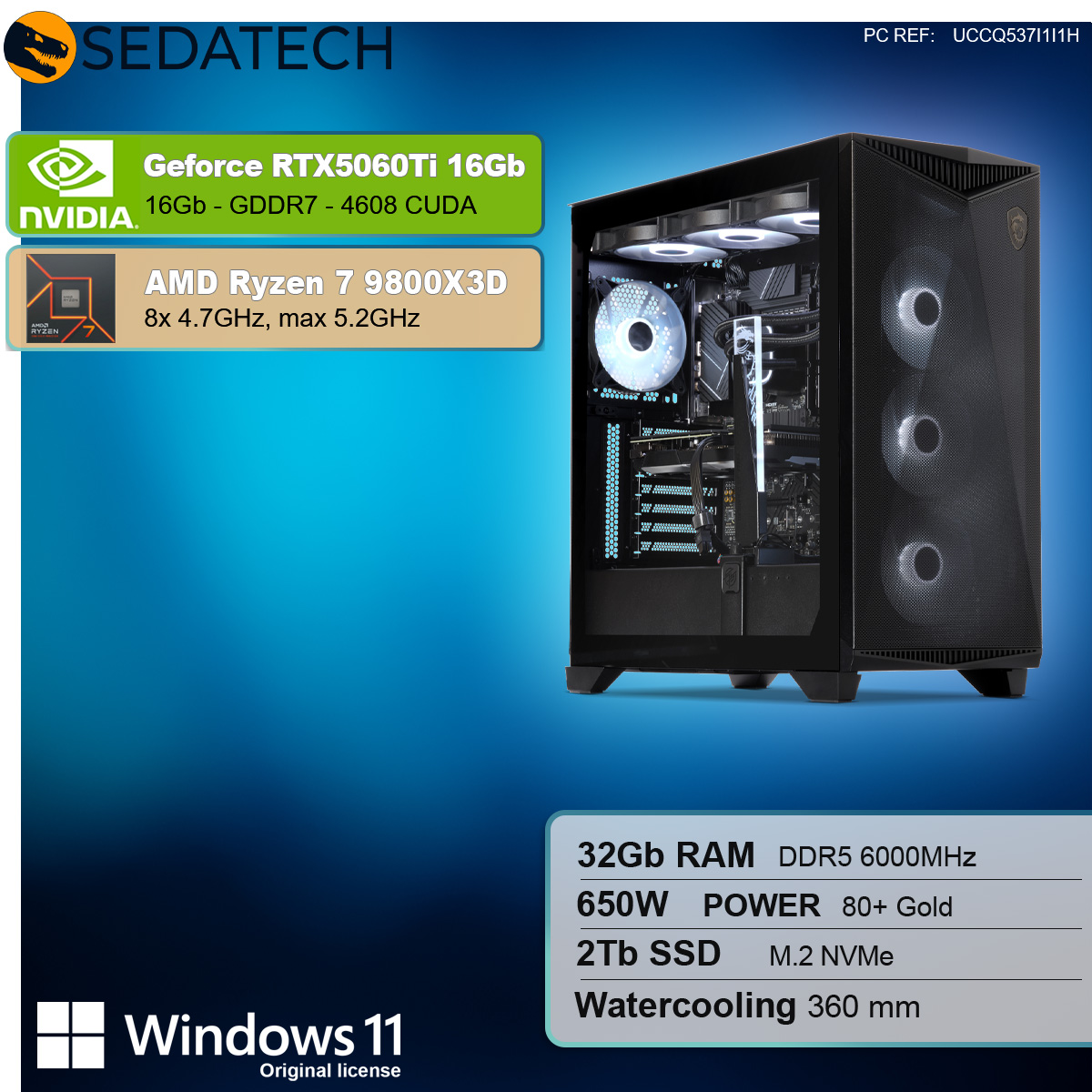Gaming PC, AMD Ryzen 7 9800X3D, Geforce RTX5060Ti 16Gb