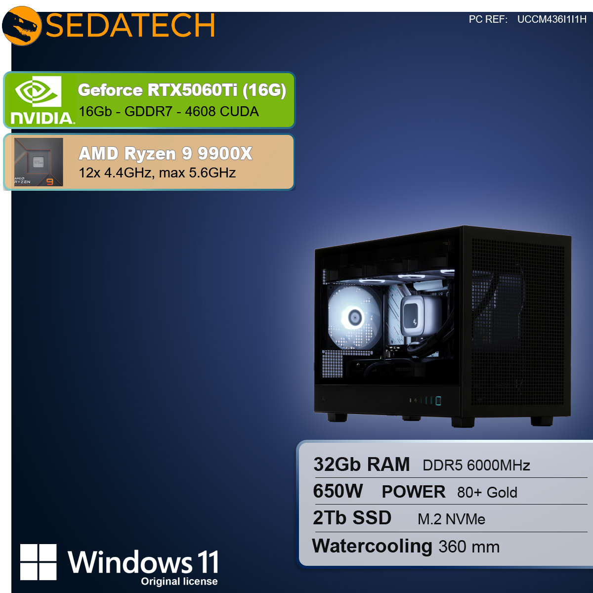 Gaming Mini-PC, AMD Ryzen 9 9900X, Geforce RTX5060Ti 16Gb