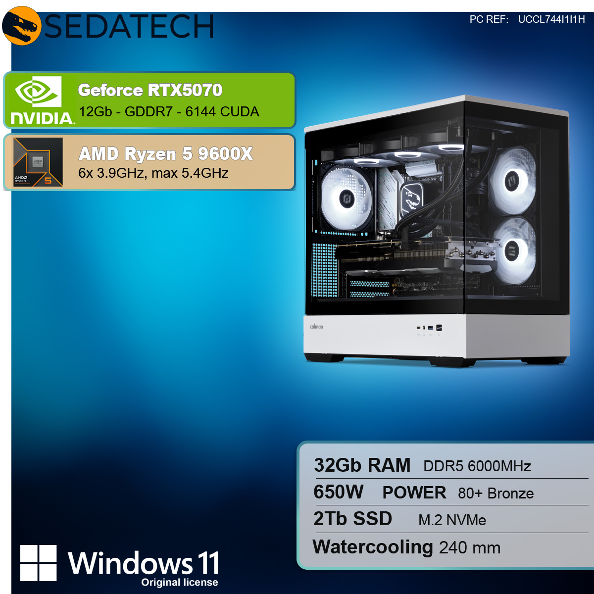 Nicht nur durch seine edle und außergewöhnliche Optik versetzt dieser Power-Rechner seine Nützer ins Staunen. Auch die inneren Werte stimmen! Die einzelnen Komponenten sind miteinander perfekt abgestimmt : dank der extrem leistungsstarken Geforce RTX5070 12GB, einer der schnellsten Grafikkarte überhaupt, und der CPU AMD Ryzen 5 9600X 6x 3.9GHz (max 5.4GHz) genießt der kompromisslose Anwender die anspruchsvollsten 3D Spiele und Multimediaanwendungen in bester 4K Qualität und mit maximaler FPS-Zahl