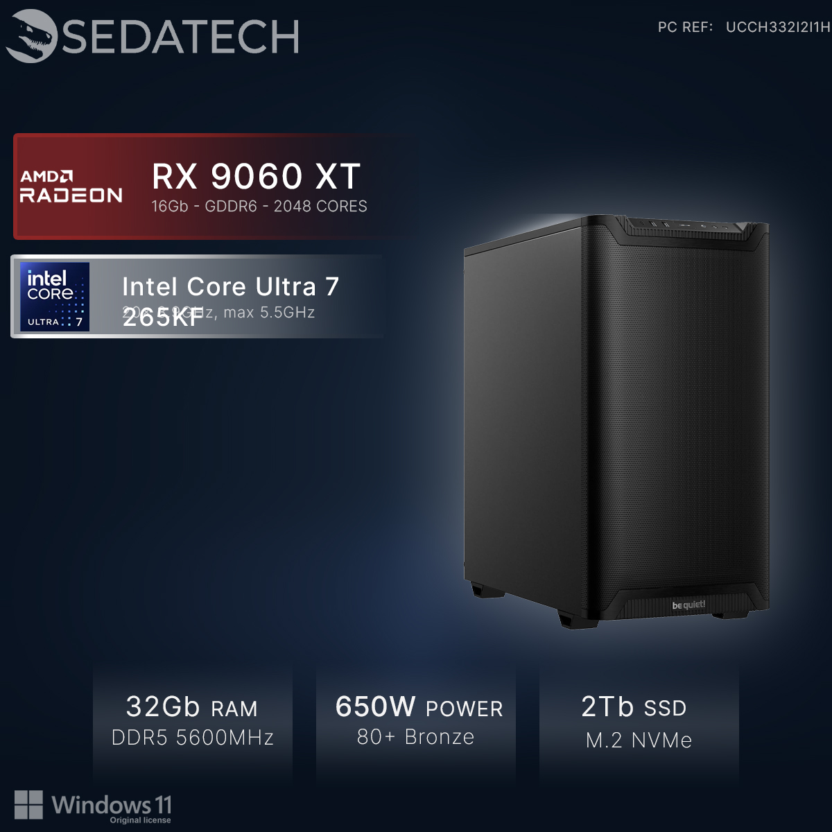 Gaming PC, Intel Core Ultra 7 265KF, Radeon RX 9060XT
