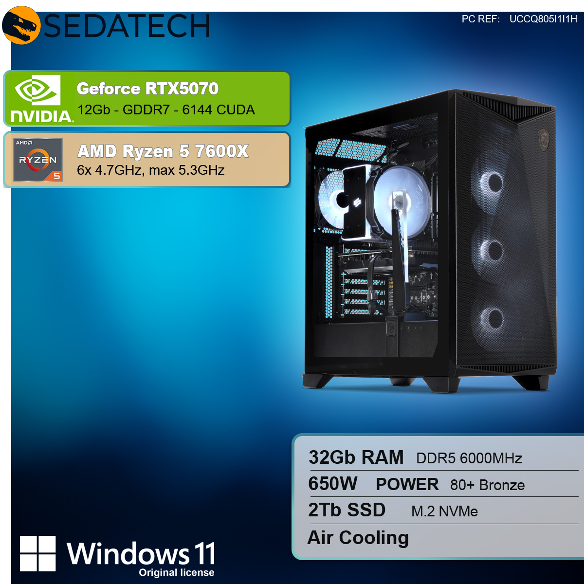 Nicht nur durch seine edle und außergewöhnliche Optik versetzt dieser Power-Rechner seine Nützer ins Staunen. Auch die inneren Werte stimmen! Die einzelnen Komponenten sind miteinander perfekt abgestimmt : dank der extrem leistungsstarken Geforce RTX5070 12GB, einer der schnellsten Grafikkarte überhaupt, und der CPU AMD Ryzen 5 7600X 6x 4.7GHz (max 5.3GHz) genießt der kompromisslose Anwender die anspruchsvollsten 3D Spiele und Multimediaanwendungen in bester 4K Qualität und mit maximaler FPS-Zahl