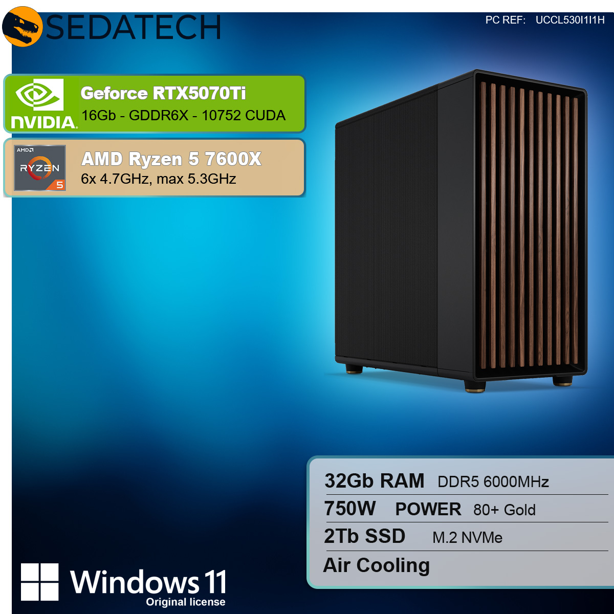 Nicht nur durch seine edle und außergewöhnliche Optik versetzt dieser Power-Rechner seine Nützer ins Staunen. Auch die inneren Werte stimmen! Die einzelnen Komponenten sind miteinander perfekt abgestimmt : dank der extrem leistungsstarken Geforce RTX5070Ti 16GB, einer der schnellsten Grafikkarte überhaupt, und der CPU AMD Ryzen 5 7600X 6x 4.7GHz (max 5.3GHz) genießt der kompromisslose Anwender die anspruchsvollsten 3D Spiele und Multimediaanwendungen in bester 4K Qualität und mit maximaler FPS-Zahl