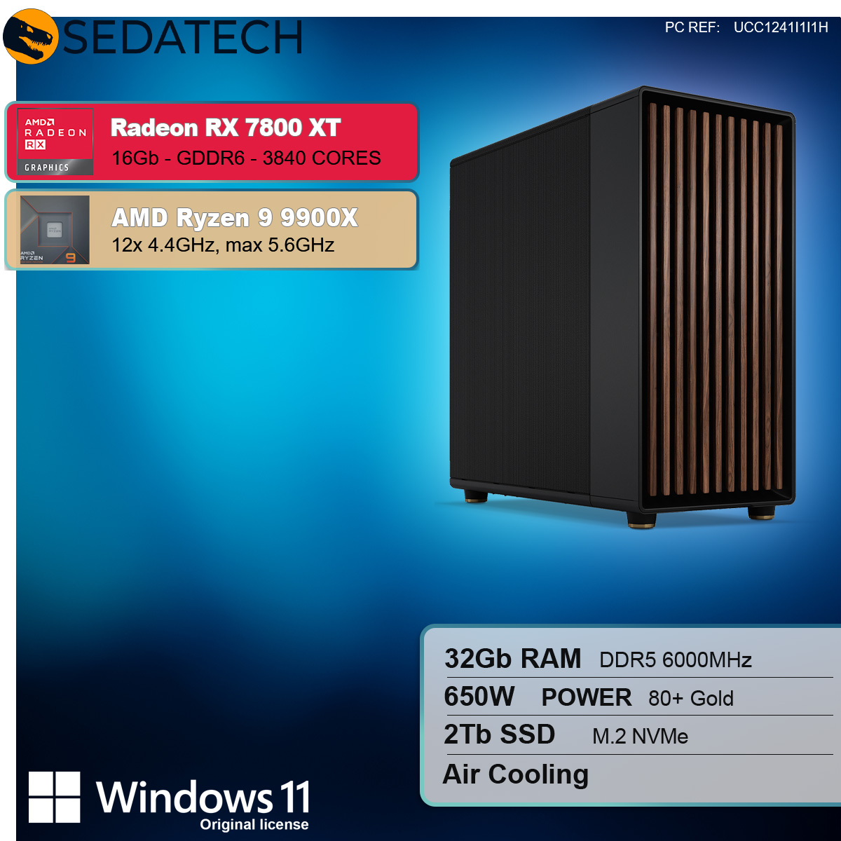 Gaming PC, AMD Ryzen 9 9900X, Radeon RX 7800XT