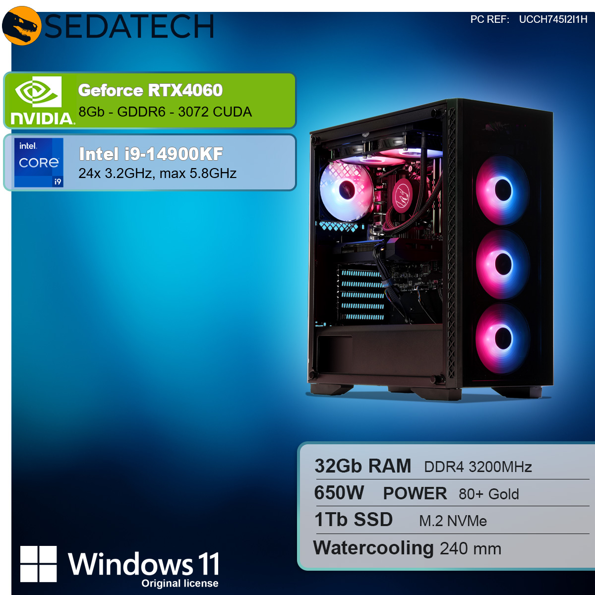 Ein sehr hochwertiges und edles Gehäuse mit modernen Design, gekuppelt mit einer extrem leistungsstarken Grafikkarte Geforce RTX4060 8GB und CPU Intel i9-14900KF 24x 3.2GHz (max 5.8GHz) zeichnet diesen Rechner aus! Der eignet sich hervorragend für kompromisslose Anwender, die anspruchsvollen 3D Spiele und Multimediaanwendungen in bester 4K Qualität mit voller DirectX 12 Unterstützung geniessen wollen