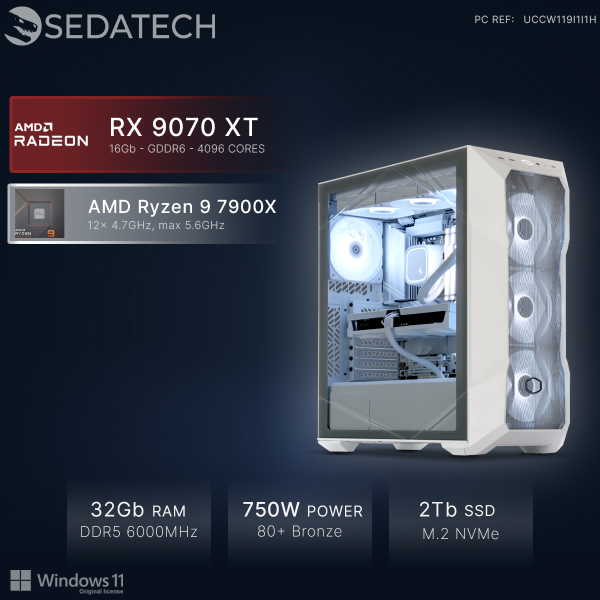 Thanks to the combination of DirectX 12 and the Radeon RX 9070 XT White 16Gb graphics card, one of the fastest on the market, and the astonishing 3D power of the AMD Ryzen 9 7900X 12x 4.7GHz (max 5.6GHz) CPU, you will be able to play any online multiplayer video game without graphic limitations, with breathtaking 3D effects and fluidity!