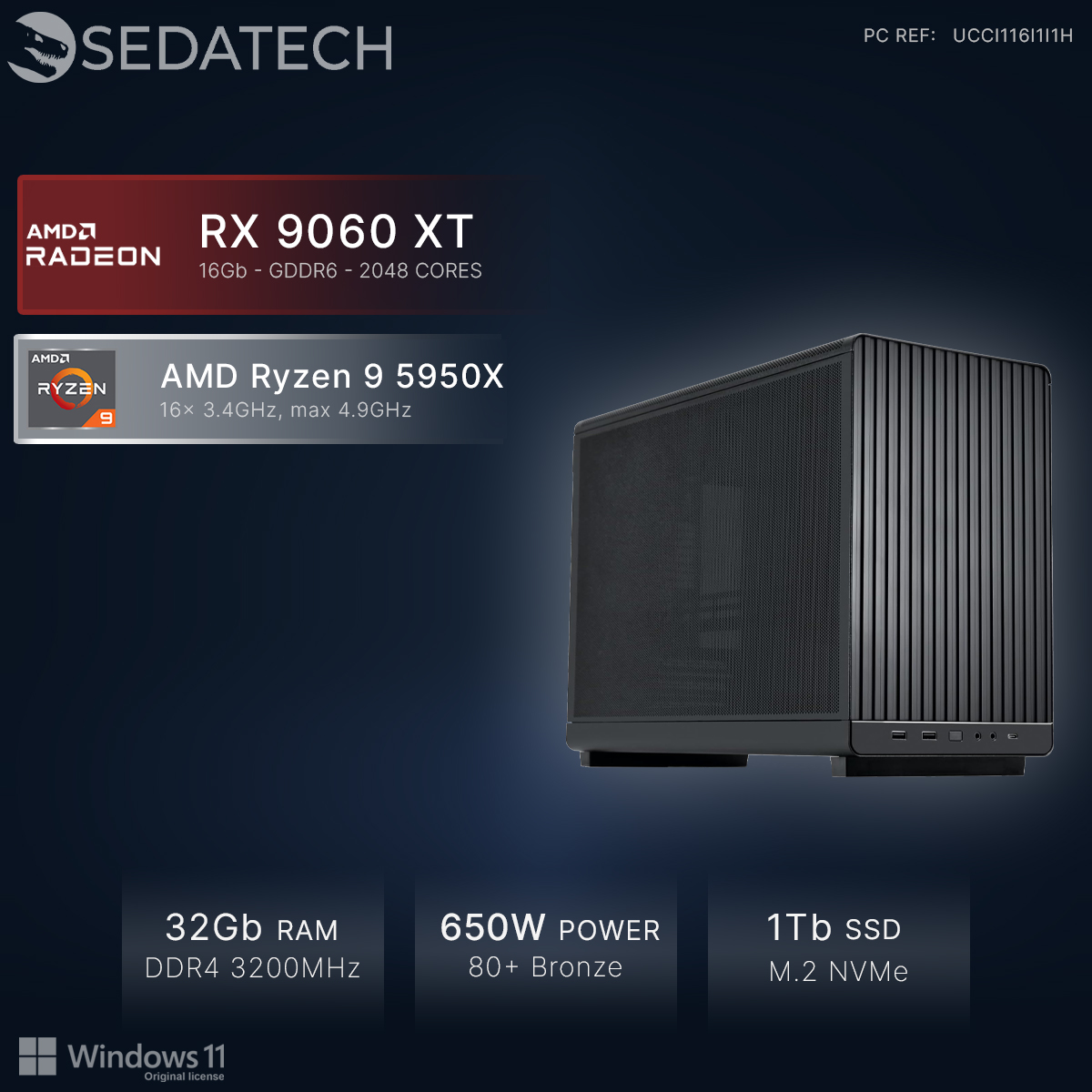 Mini-PC Pro Gamer, AMD Ryzen 9 5950X, Radeon RX 9060XT