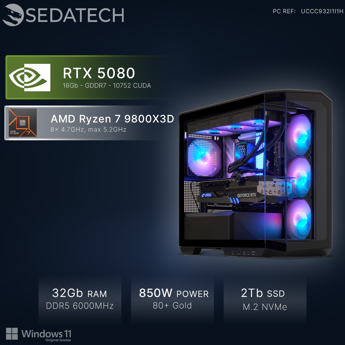 Grâce à la puissance 3D phénoménale de la Geforce RTX5080 16Go, un des modèles les plus performants du marché, et du processeur AMD Ryzen 7 9800X3D 8x 4.7Ghz (max 5.2Ghz), elle vous permettra de vous immerger dans les jeux les plus gourmands sans compromis visuels, profitant d'effets 3D époustouflants.