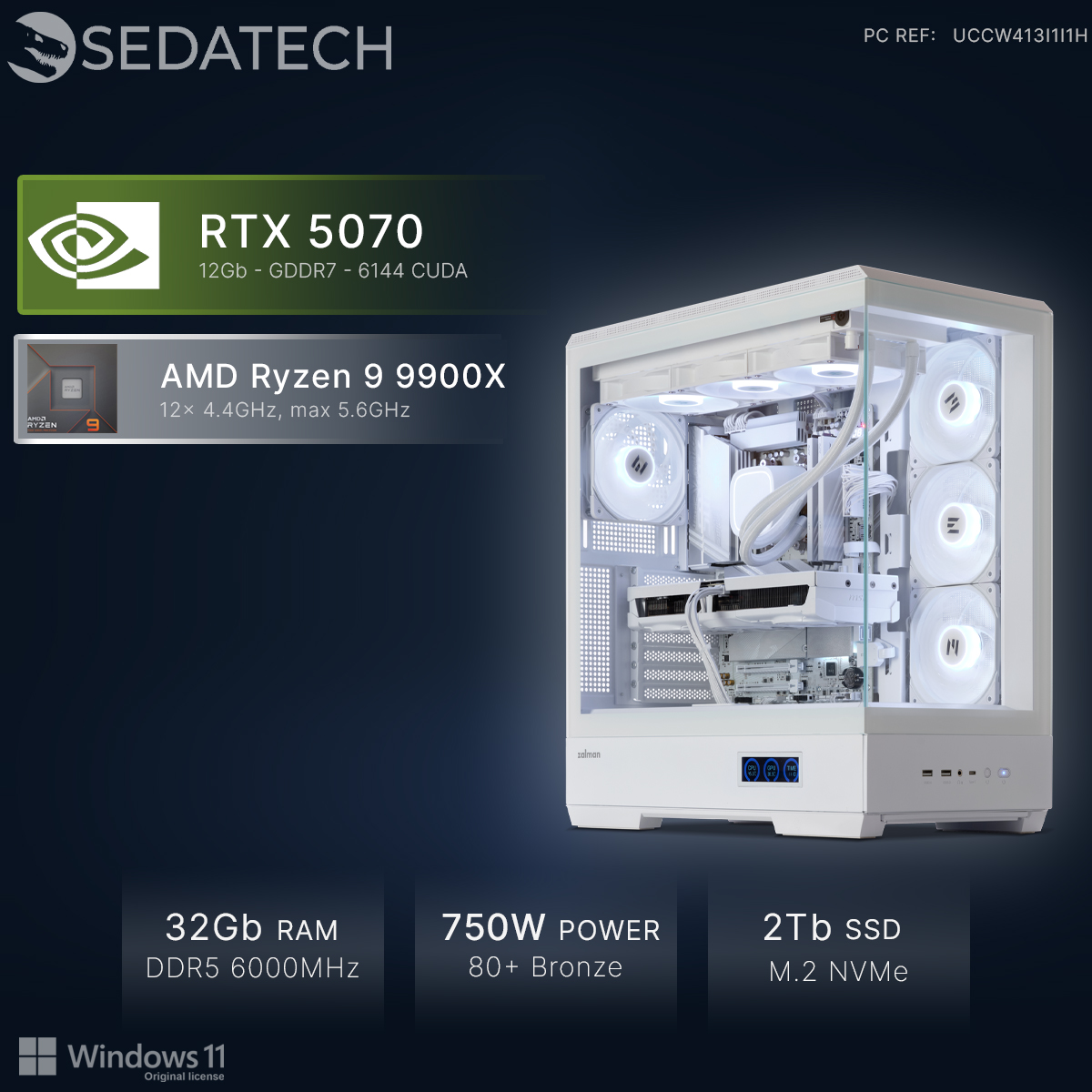Grâce à la puissance 3D phénoménale de la Geforce RTX5070 White 12Go, un des modèles les plus performants du marché, et du processeur AMD Ryzen 9 9900X 12x 4.4Ghz (max 5.6Ghz), elle vous permettra de vous immerger dans les jeux les plus gourmands sans compromis visuels, profitant d'effets 3D époustouflants.