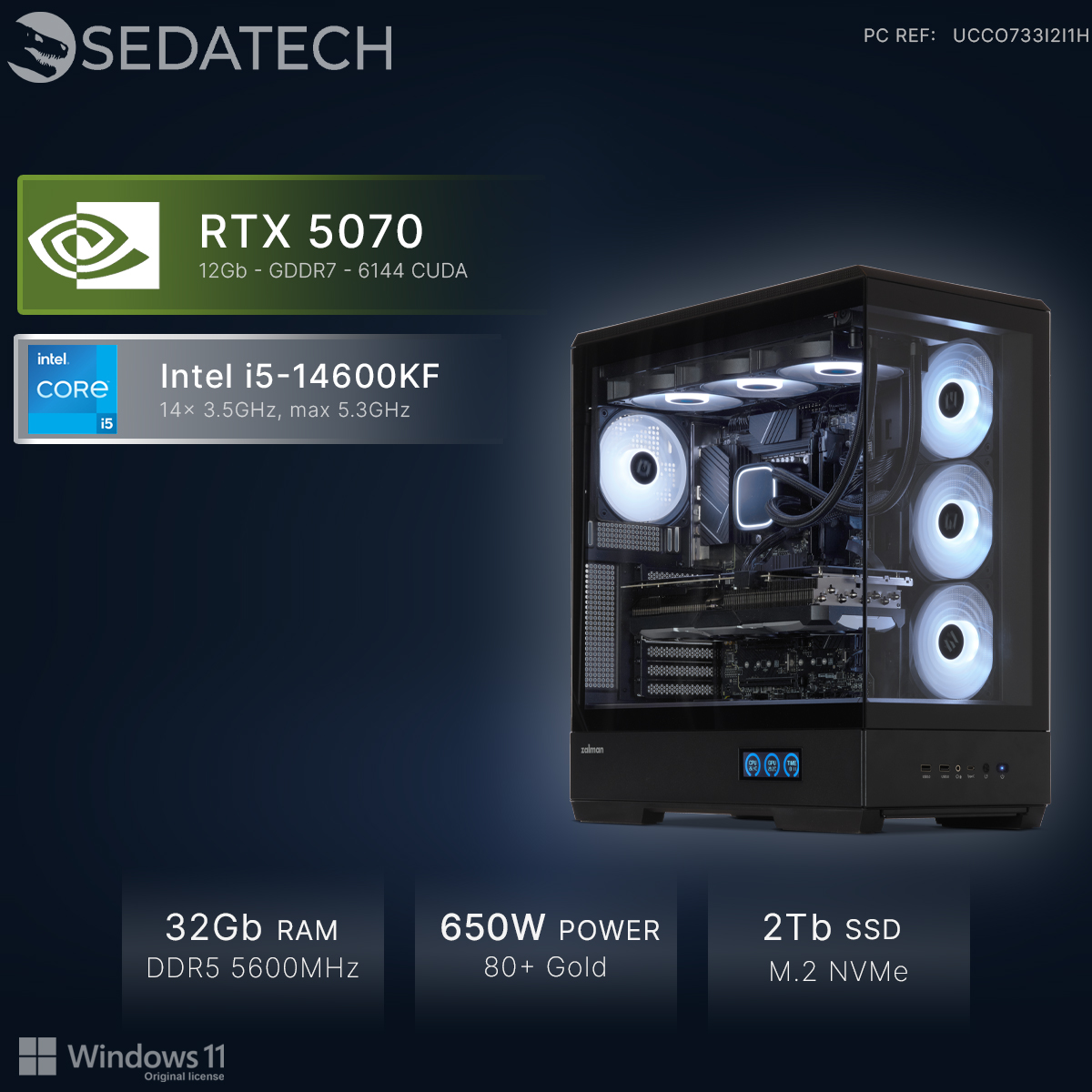 Grâce à la puissance 3D phénoménale de la Geforce RTX5070 12Go, un des modèles les plus performants du marché, et du processeur Intel i5-14600KF 14x 3.5Ghz (max 5.3Ghz), elle vous permettra de vous immerger dans les jeux les plus gourmands sans compromis visuels, profitant d'effets 3D époustouflants.